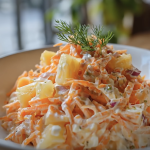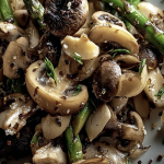 Sin vaciar la sartén de todo el aceite, baja el fuego a medio. Añade ahora la turkey bacon picada y el ajo. Cocina suavemente hasta que el ajo desprenda su aroma y el bacon quede un poco tostado. Esto aportará una base de sabor rica y un ligero fondo ahumado al guiso.