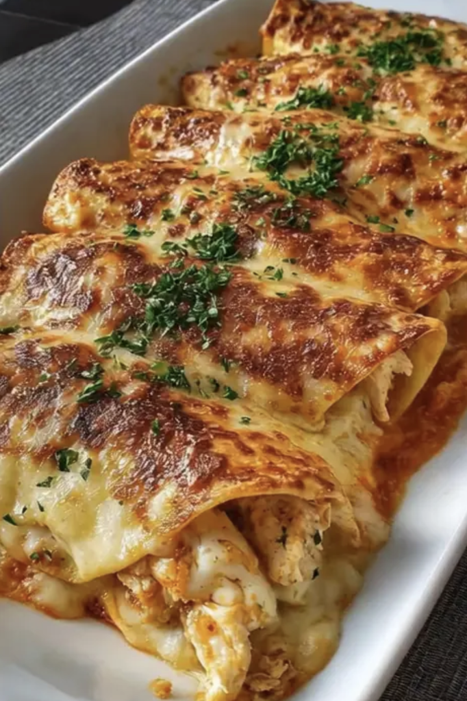 Estos panqueques salados rellenos de pollo y queso gratinados son una delicia reconfortante, perfecta para disfrutar en casa con un toque casero y cremoso. La combinación de una masa ligera y flexible con un relleno suave de pollo desmenuzado y queso derretido, cubiertos con una salsa cremosa y gratinados al horno, da como resultado un plato completo, equilibrado y sumamente sabroso.