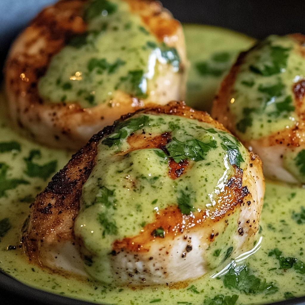 Cuando la salsa esté bien caliente y ligeramente espesa, retira la sartén del fuego. Sirve las pechugas de pollo en platos individuales y vierte una generosa cantidad de la salsa cremosa de cilantro por encima. Asegúrate de que cada porción quede bien bañada con la salsa para disfrutar al máximo su textura y sabor.