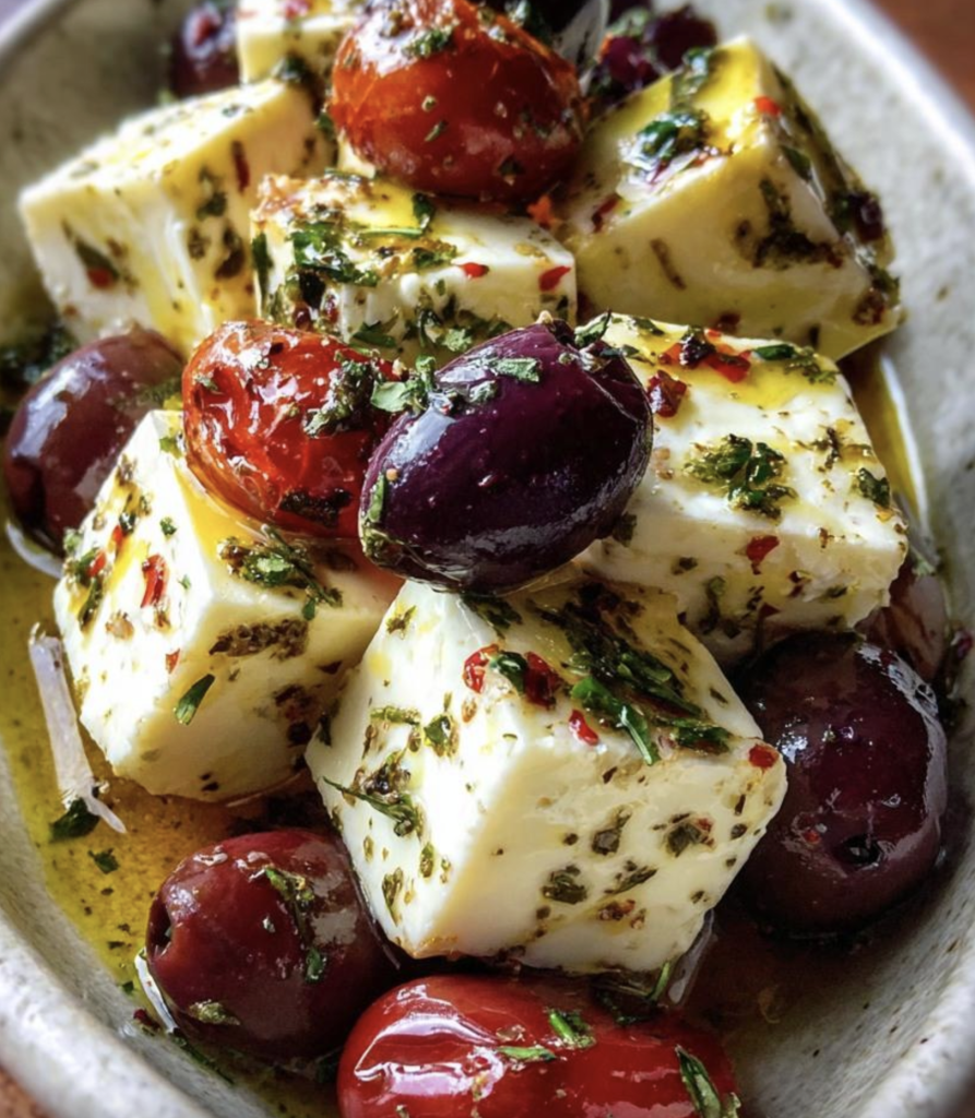 La clave de esta receta no está solo en los ingredientes, sino en el proceso de ensamblaje y el tiempo de reposo, que permite que cada cubo de queso y cada aceituna absorban los aceites y aromas de las hierbas y especias. El resultado es un aperitivo visualmente apetitoso y lleno de sabores profundos que se distribuyen en cada bocado.